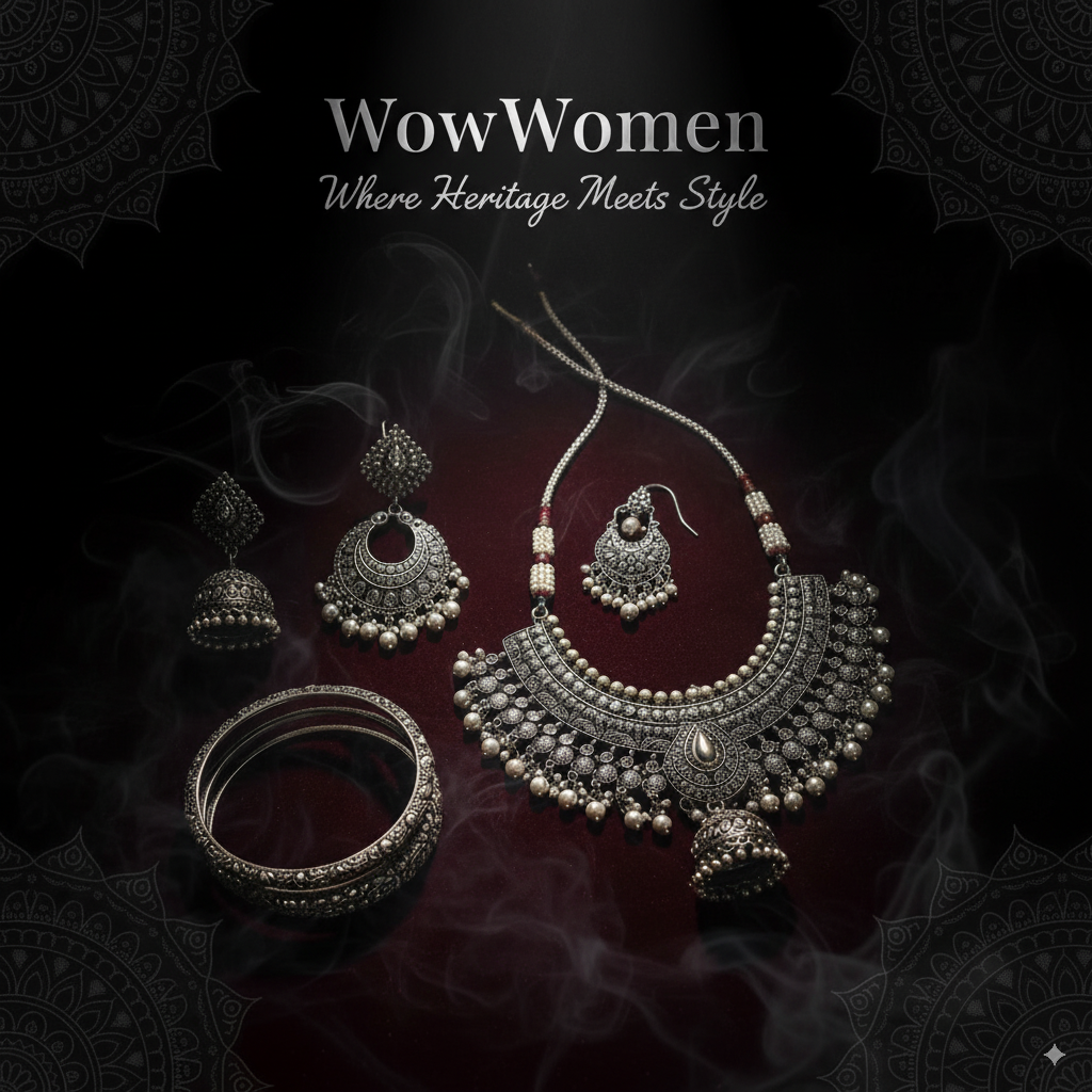 Tribal Elegance: Oxidised Silver Combo Jewellery Set for Women